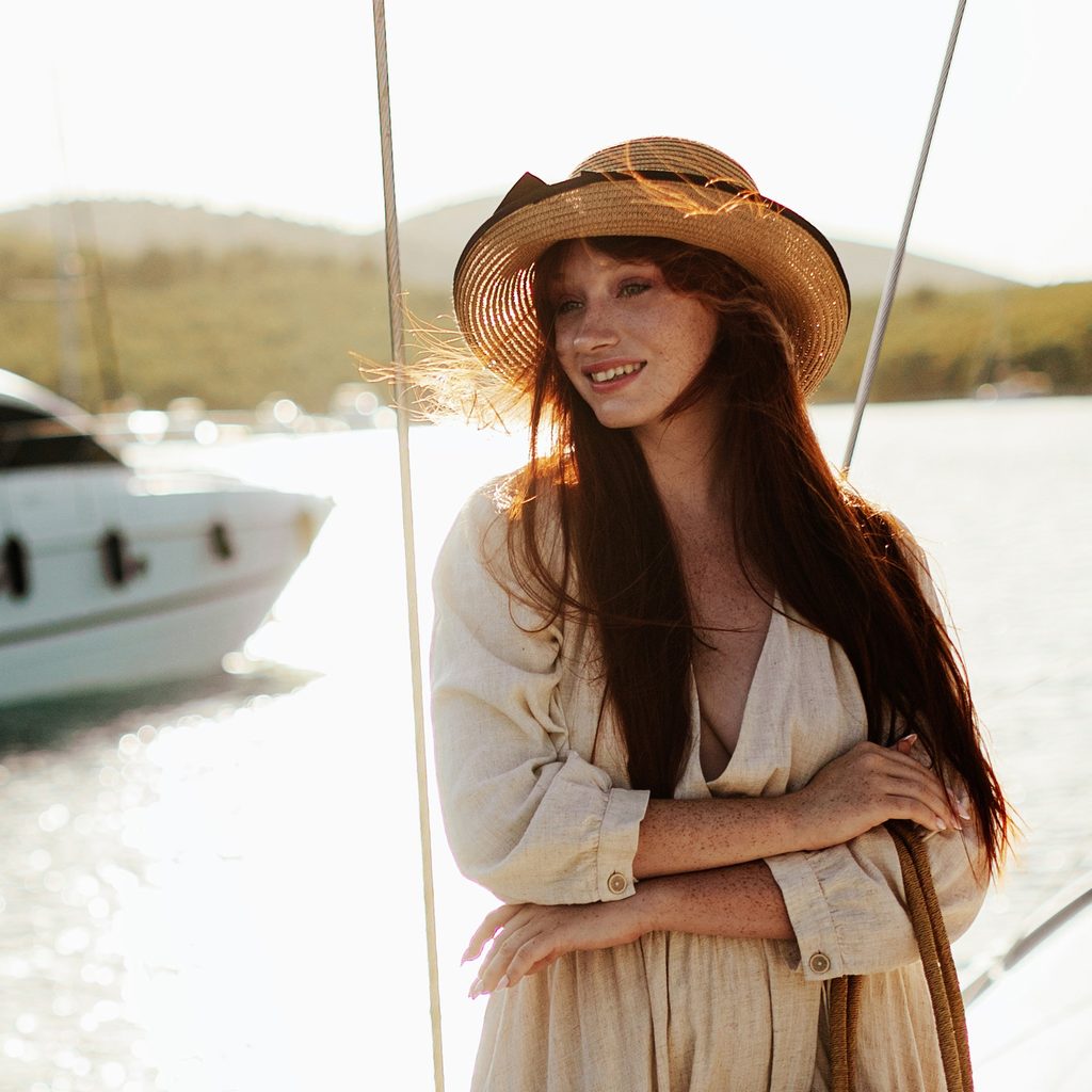 Letní klobouk se širokým lemem. Ideální pro milovnice romantických stylizací. Hodí se zároveň v rozpáleném městě i na pláži. Velmi slušivý.