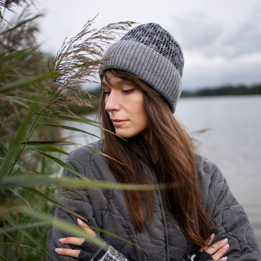 Originální čepice se zahnutím na zimu. Provedená z nekousavého materiálu. Klasický střih. Lehce elastická. Dobře přiléhá k hlavě.