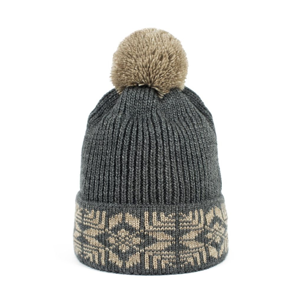 Zimní čepice s bambulí. Provedená z nekousavého materiálu. Spodní část na zahnutí. Lehce elastická. Hodí se ke každodenním stylizacím. Výrobek zateplený flaušem. Vyrobeno v Polsku. Unisex.