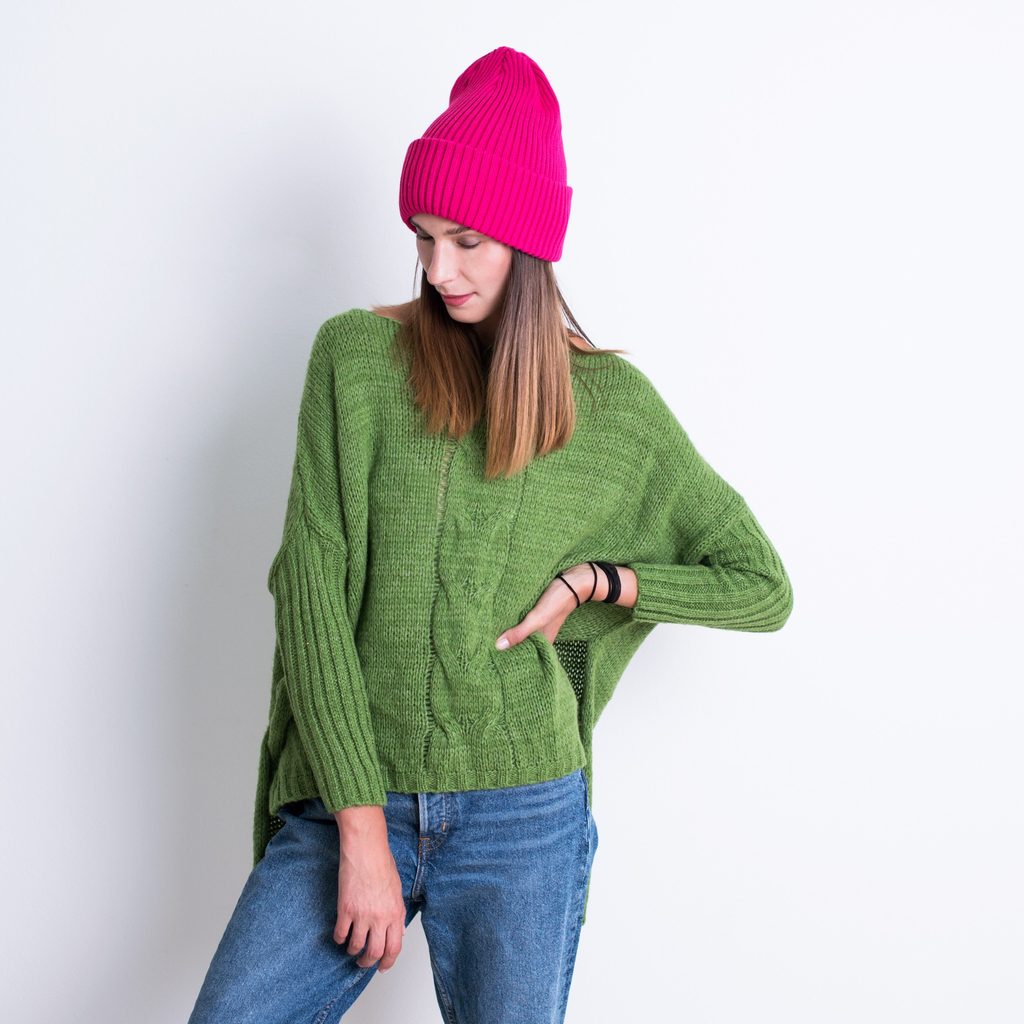 Dlouhá čepice na přechodná období. Provedená z nekousavého materiálu. Spodní část na zahnutí. Klasický střih. Lehce elastická. Dobře přiléhá k hlavě. Vyrobeno v Polsku.