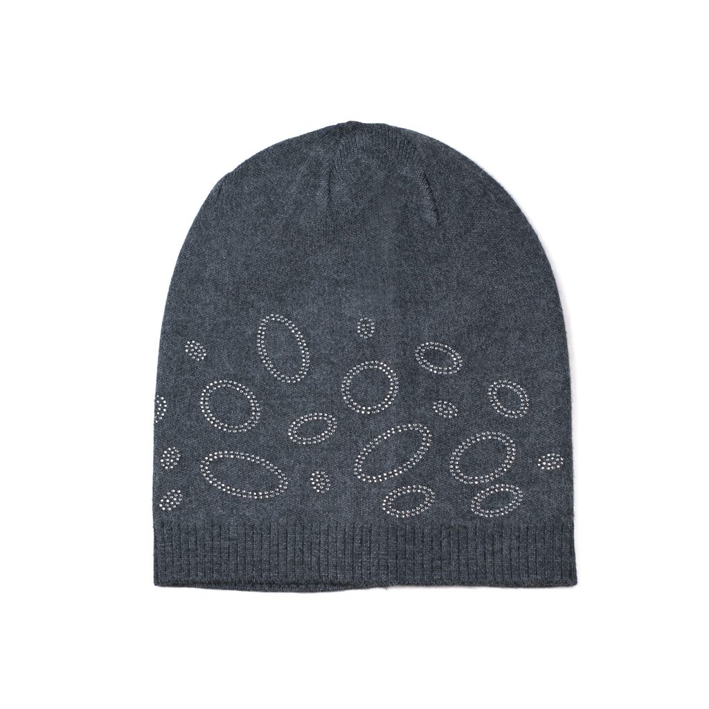 Tmavě šedá čepice zdobená kroužky