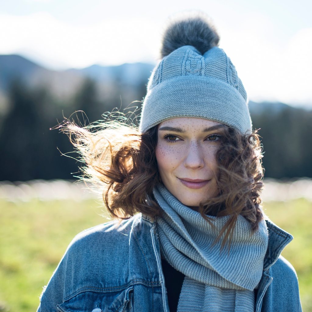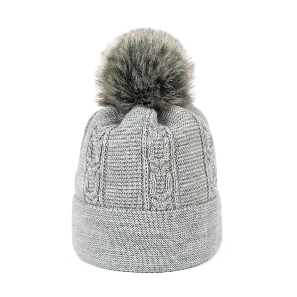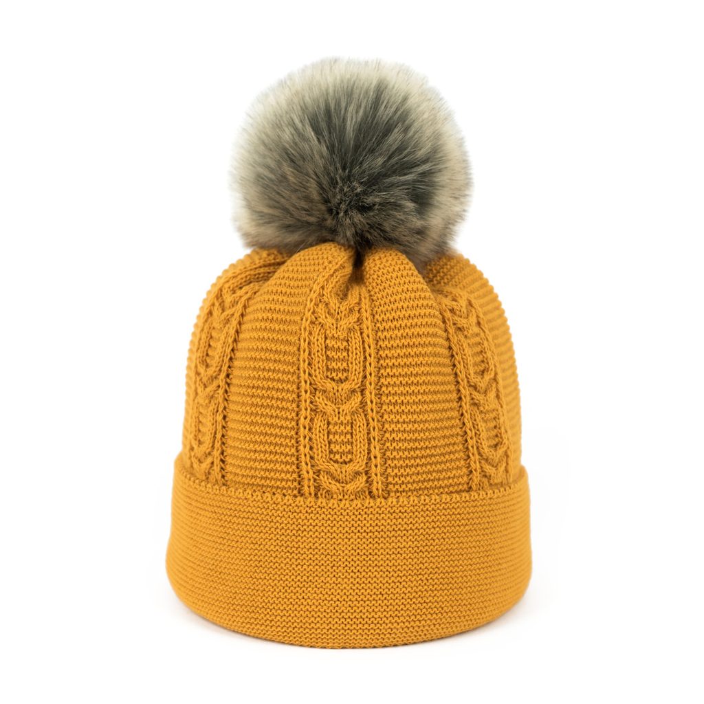 Zimní čepice s bambulí. Provedená z měkkého a příjemného materiálu. Bambule provedená z umělé kožešiny. Spodní část na zahnutí. Lehce elastická. Velmi teplá. Hodí se zároveň k neformálním i elegantním stylizacím. Výrobek zateplený flaušem. Vyrobeno v Polsku.