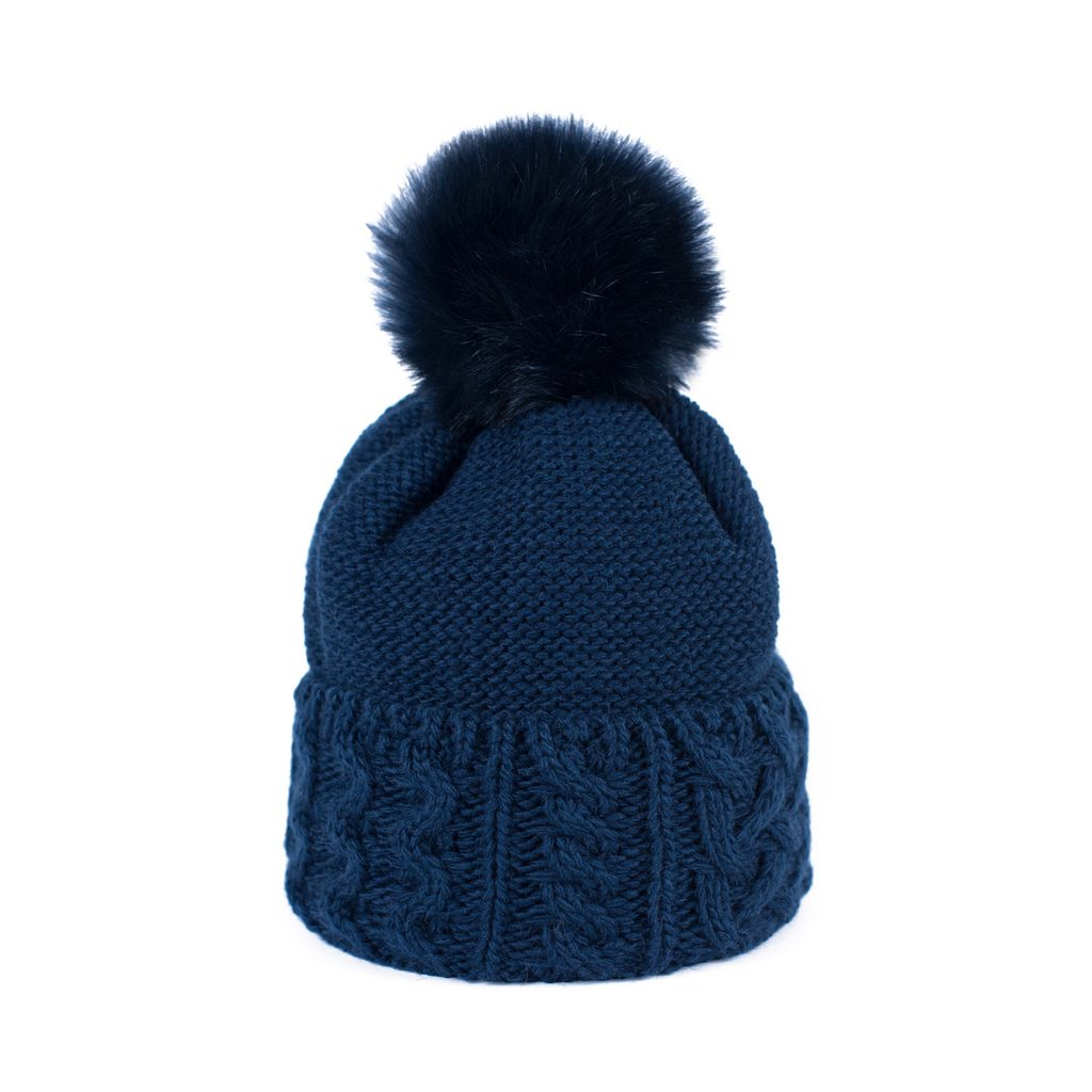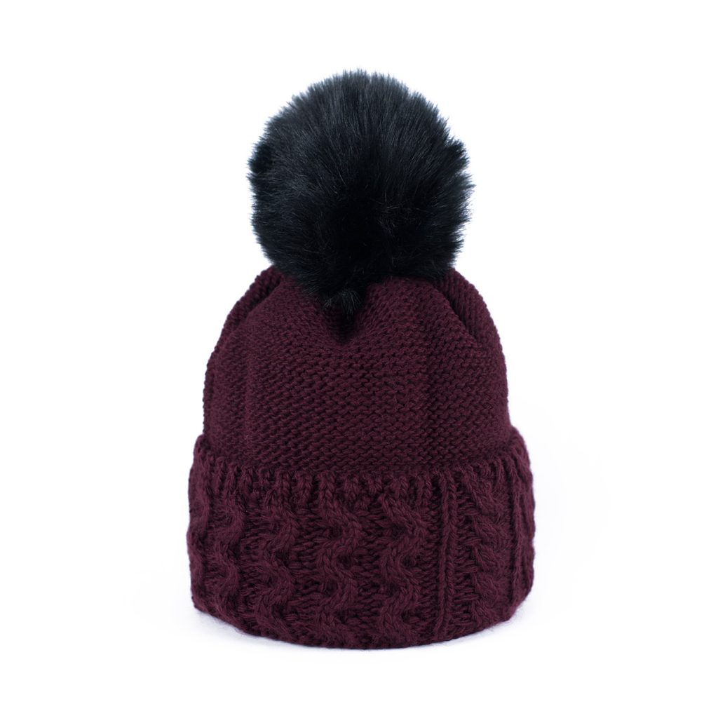 Zimní čepice s bambulí. Provedená z měkkého a příjemného materiálu. Bambule provedená z umělé kožešiny. Spodní část na zahnutí. Velmi teplá. Hodí se zároveň k neformálním i elegantním stylizacím.