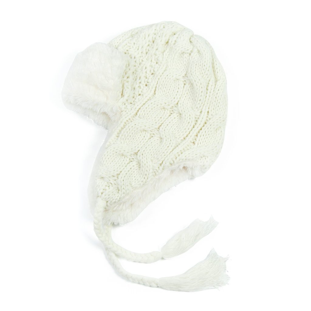 Teplá ušanka s copánky bílá