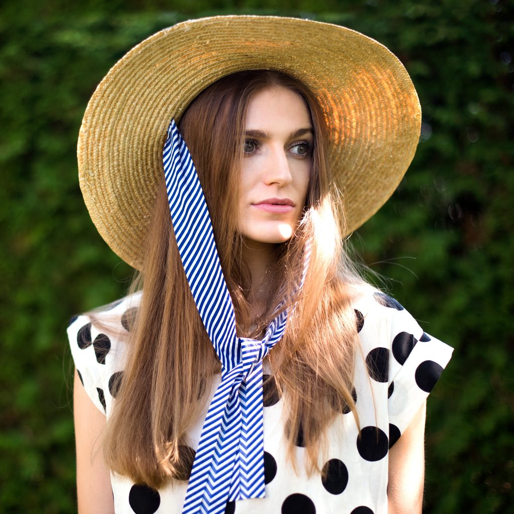 Letní klobouk se širokým lemem. Velmi slušivý. Hodí se zároveň v rozpáleném městě i na pláži. Elegantní a stylový, ideální k nadčasovým letním stylizacím. Velmi lehký, hezky se prezentuje na hlavě.
