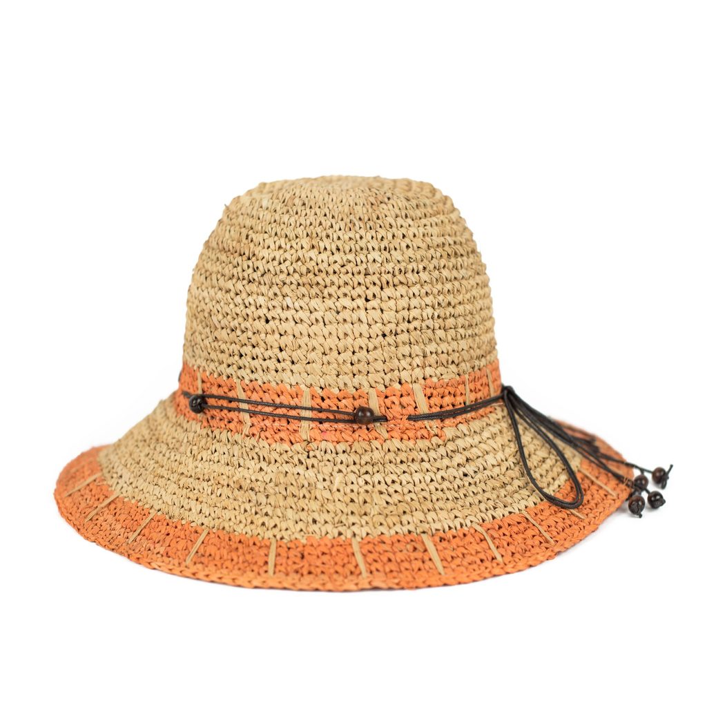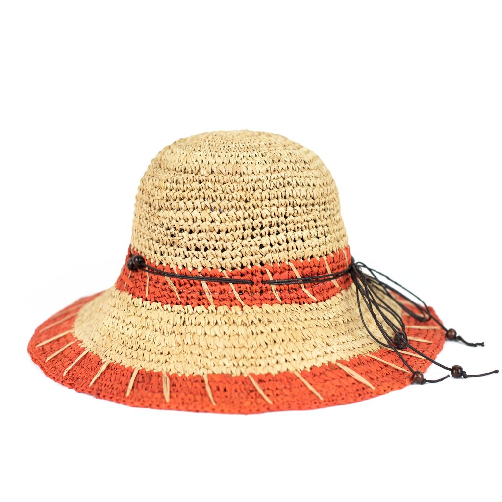 Letní klobouk se širokým lemem. Může být složen bez újmy pro tvar. Vzadu regulace obvodu. Lehký a vzdušný, ideální na vedra. Velmi lehký, hezky se prezentuje na hlavě. Hodí se zároveň v rozpáleném městě i na pláži.