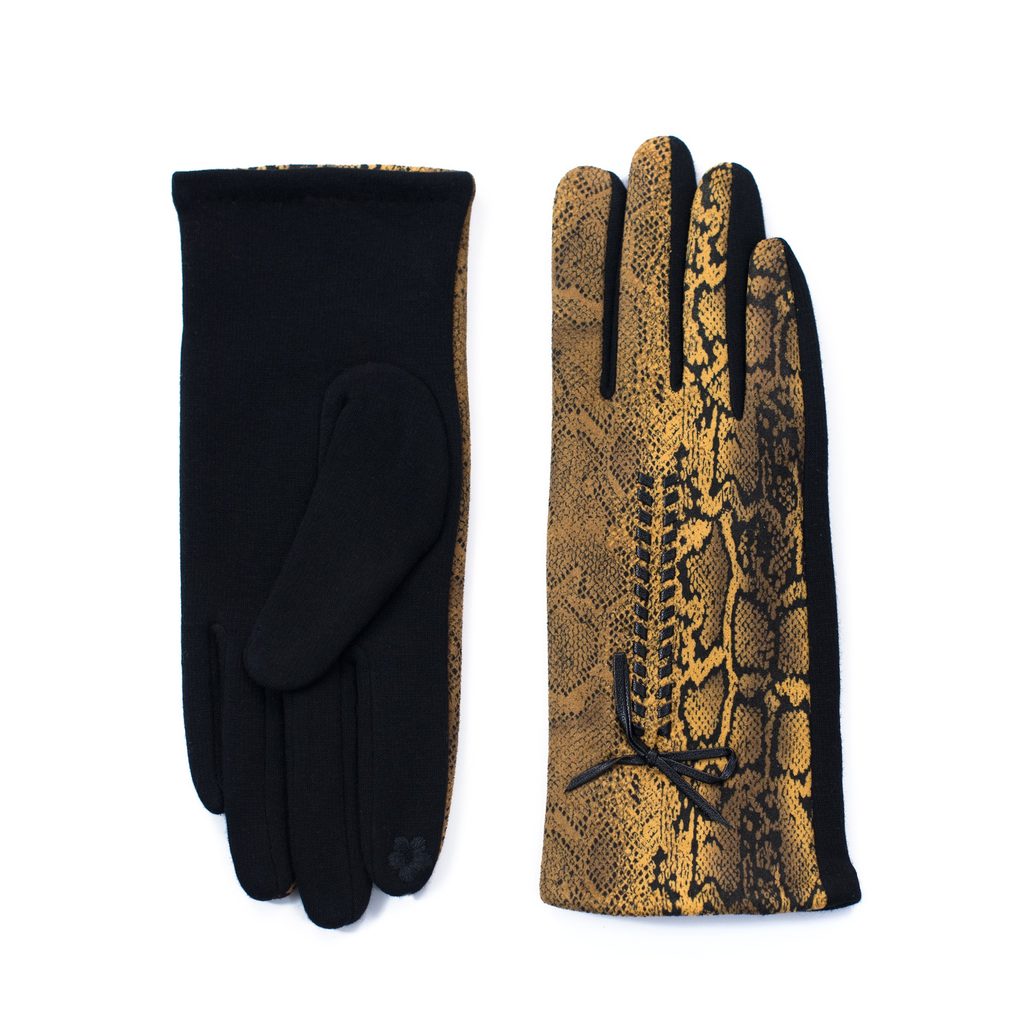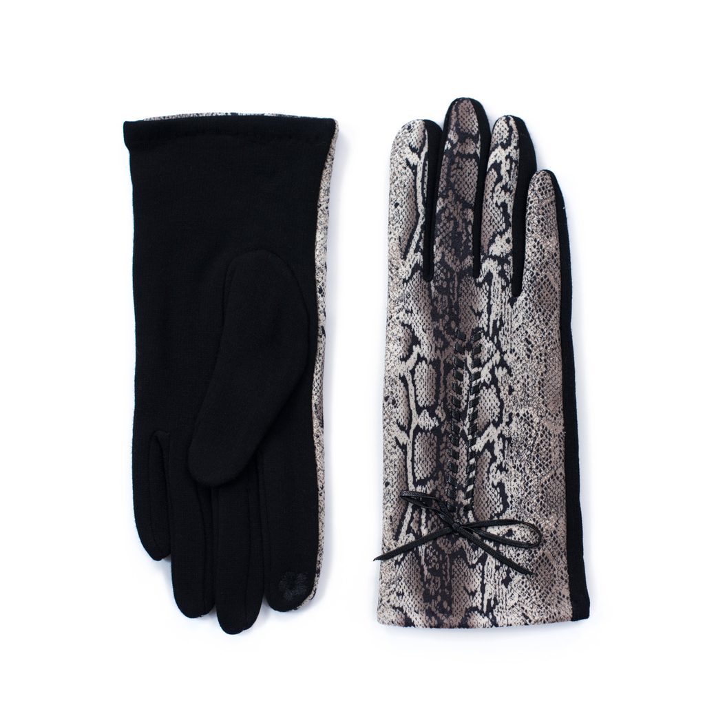 Vkusně zdobené elegantní rukavice. Provedené z pružné látky, přizpůsobí se dlaním. Můžete v nich manipulovat s telefonem. Výrobek zateplený uvnitř umělou kožešinou. Jemně elastické. Zalíbí se dámám, které si cení elegance a výjimečného stylu.