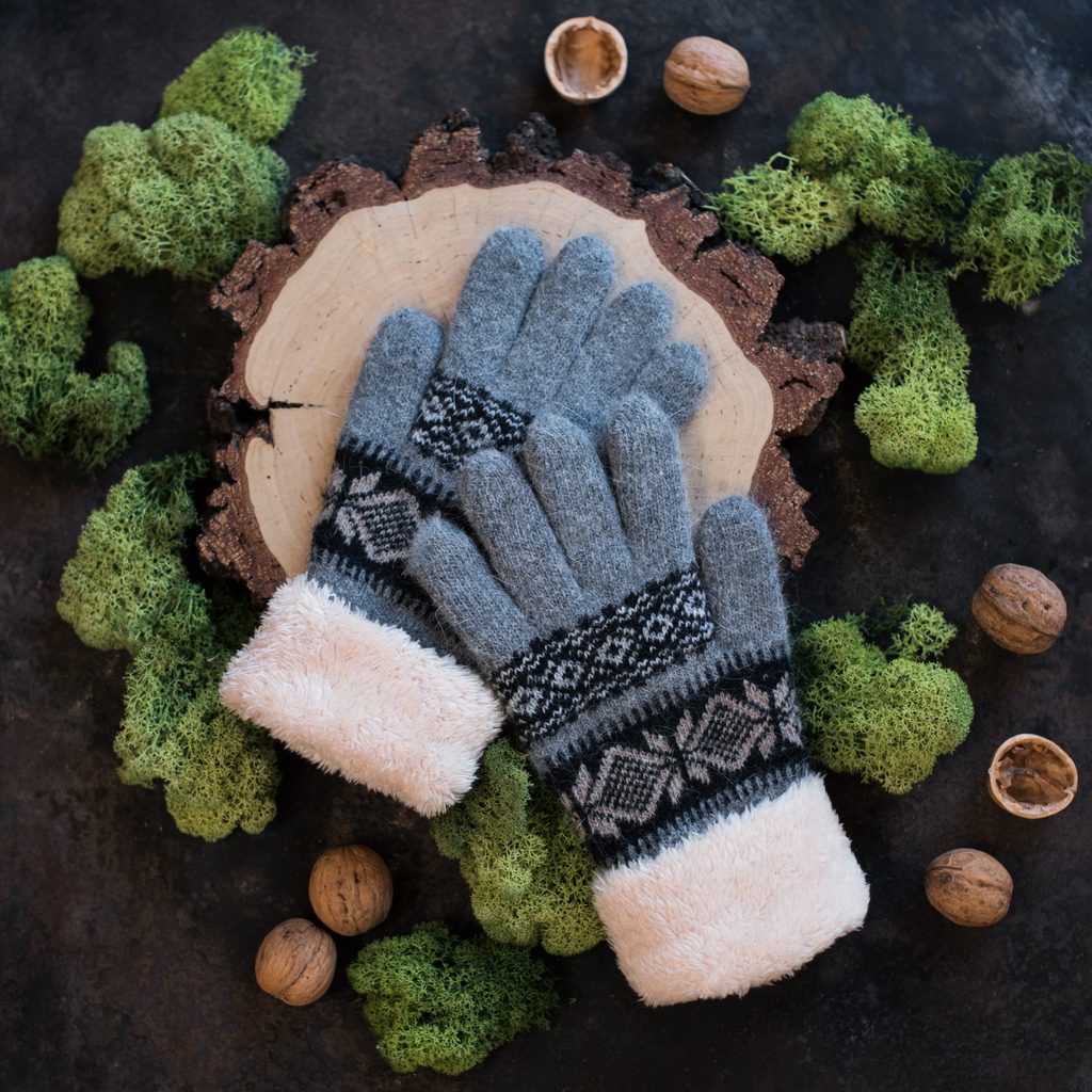 Šedé teplé rukavice se vzorem