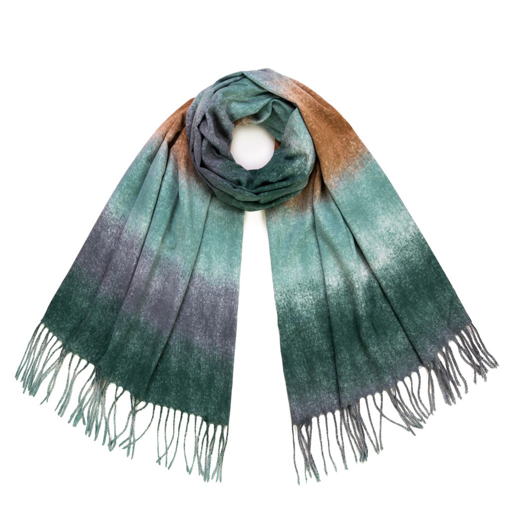 Stínovaná zimní šála. Provedená z nekousavého materiálu. Hodí se k mnoha dámským stylizacím. Každodenním zimním stylizacím dodá lesk.
