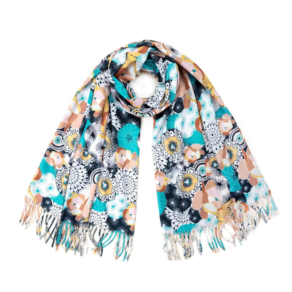 Zimní šála zdobená květinovým motivem. Provedená z měkkého a příjemného materiálu. Hodí se k mnoha dámským stylizacím. Velmi dlouhá, ideální k zabalení se.
