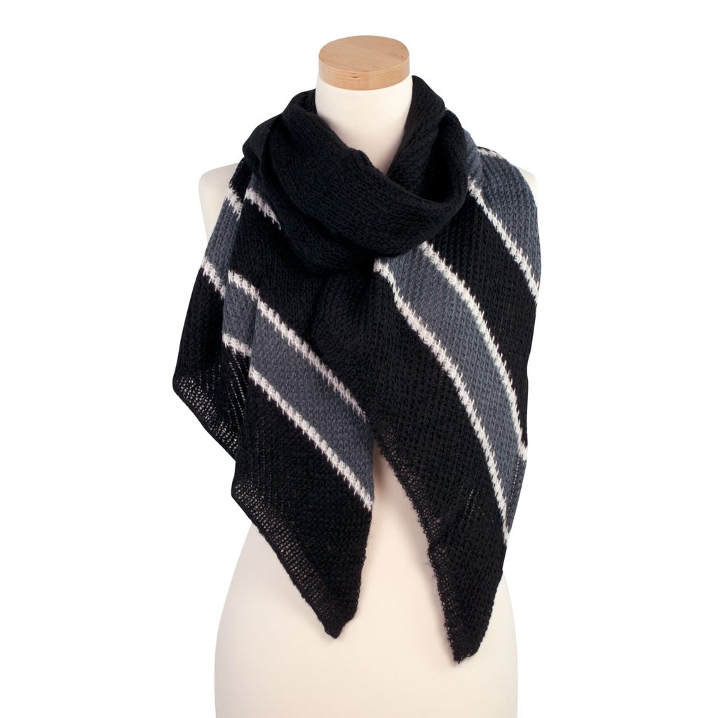 Zimní šál XXL s proužky - černobílý
