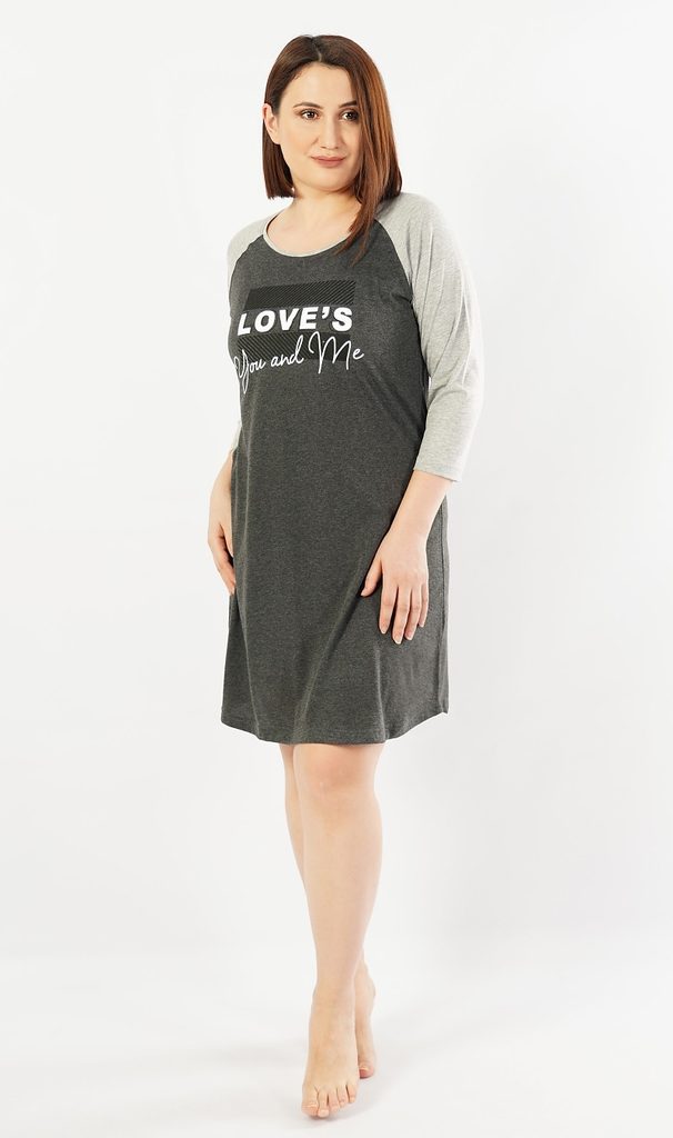Dámská noční košile s tříčtvrtečním rukávem You and me - šedá