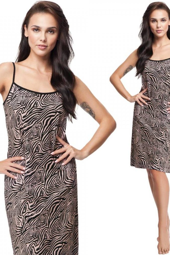 Dámská noční košile 102 brown Luna - vyrobeno z kvalitní bavlny příjemné na dotyk - vzorovaný design - špagetová ramínka - délka nad kolena