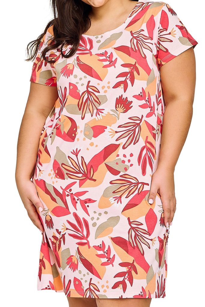 Dámská noční košilka 3152 Tessa TARO - růžová barva - z vysoce kvalitní bavlna - se vzorem - krátké rukávy