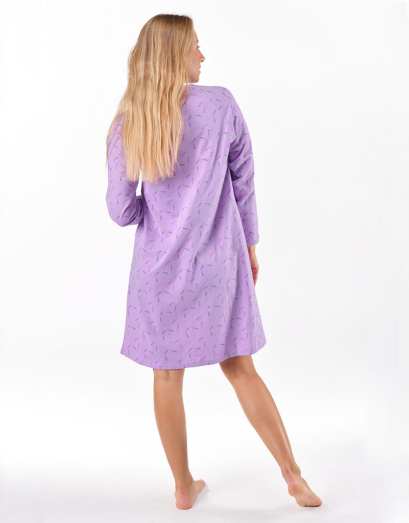 Dámská košilka noční dlouhý rukáv, šité, s potiskem 19175 - sacharóza levandulová