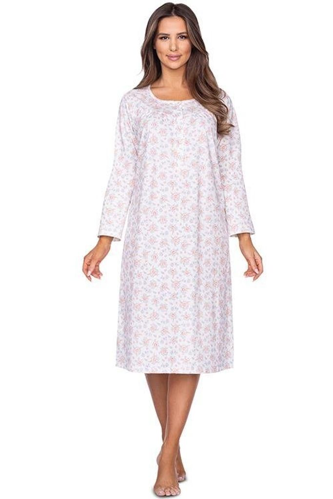 Košilka Isa má velice pohodlný střih, je dlouhá a má krásný oranžovo-šedý květinový vzor. Materiál: 100% bavlna