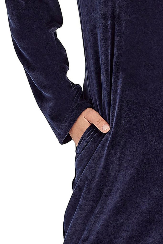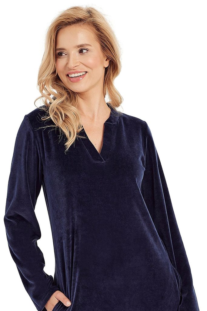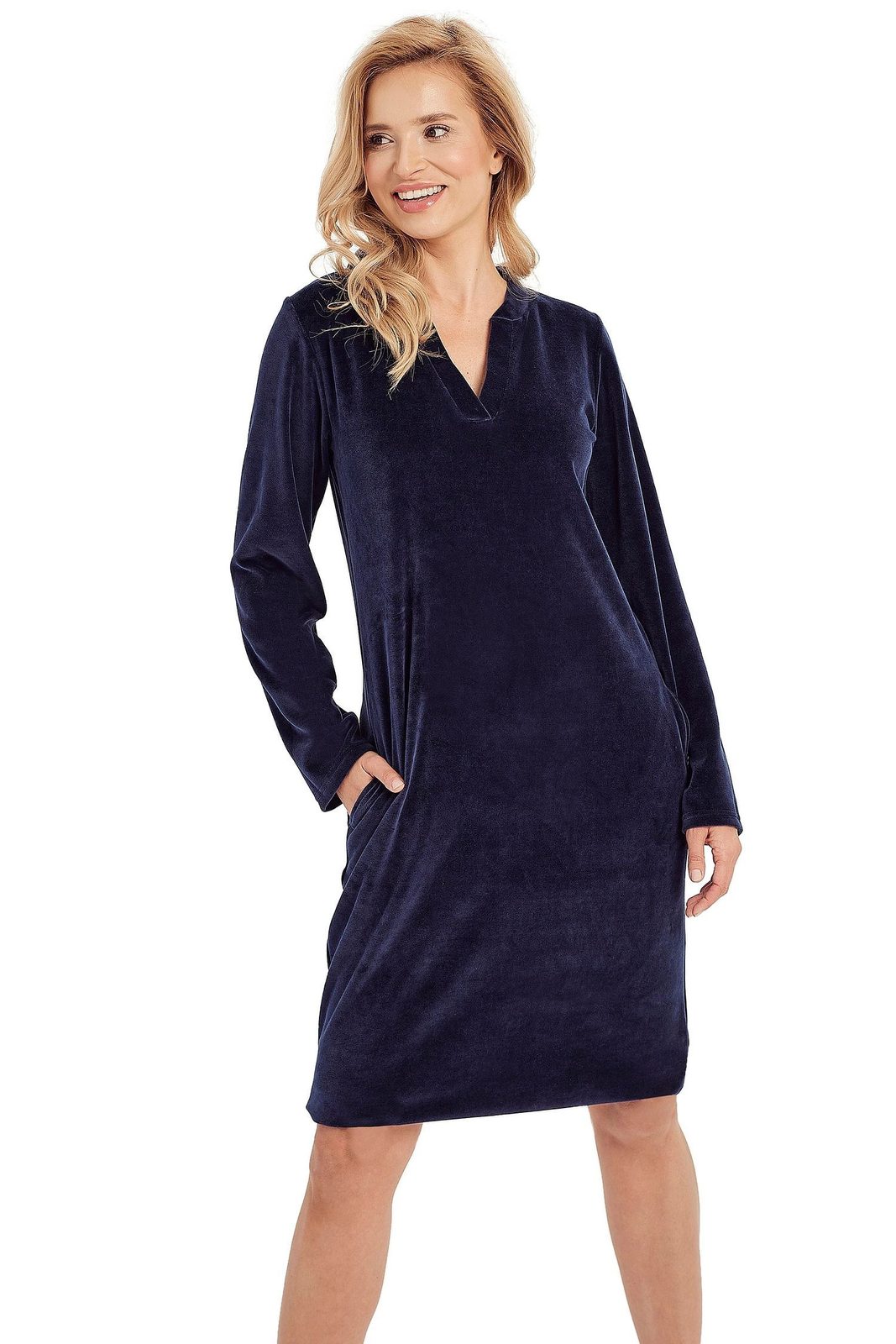 Noční košile 3028 Lauren TARO - tmavě modrá barva - je vyrobená z velmi kvalitní bavlny - velur - s dlouhými rukávy - s kapsami