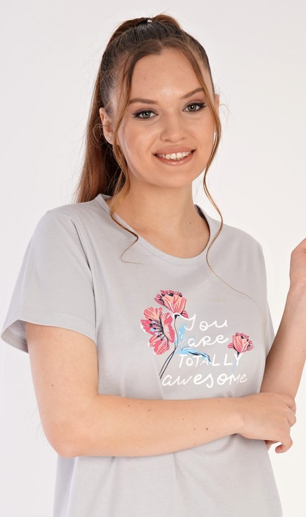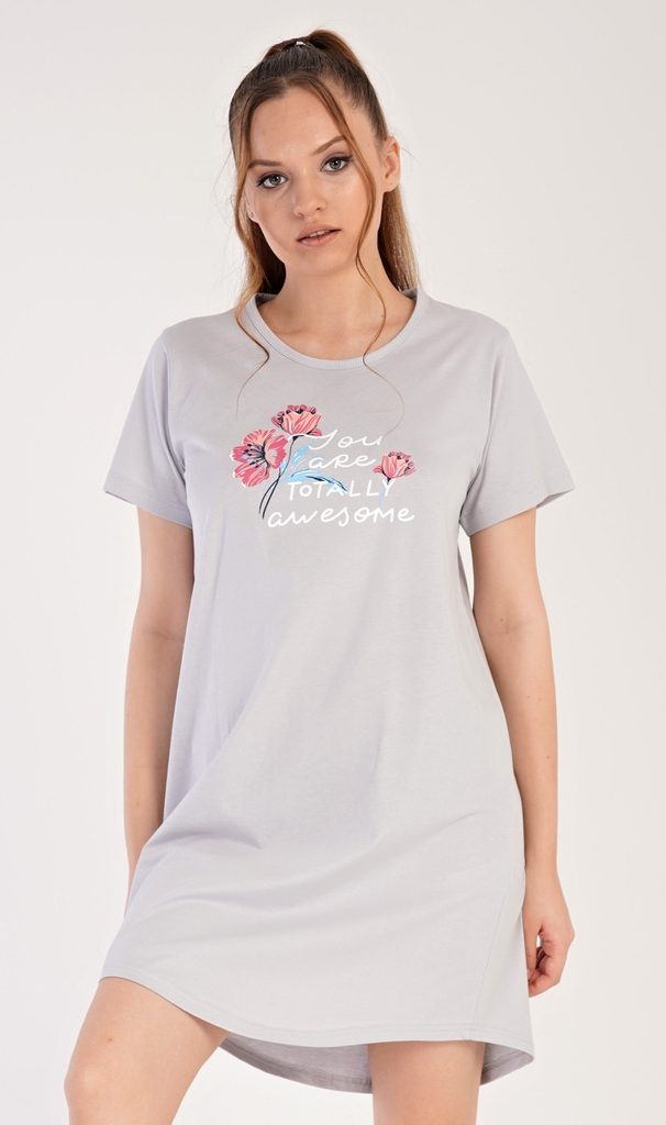 Dámská noční košile s krátkým rukávem Cassie - světle šedá
