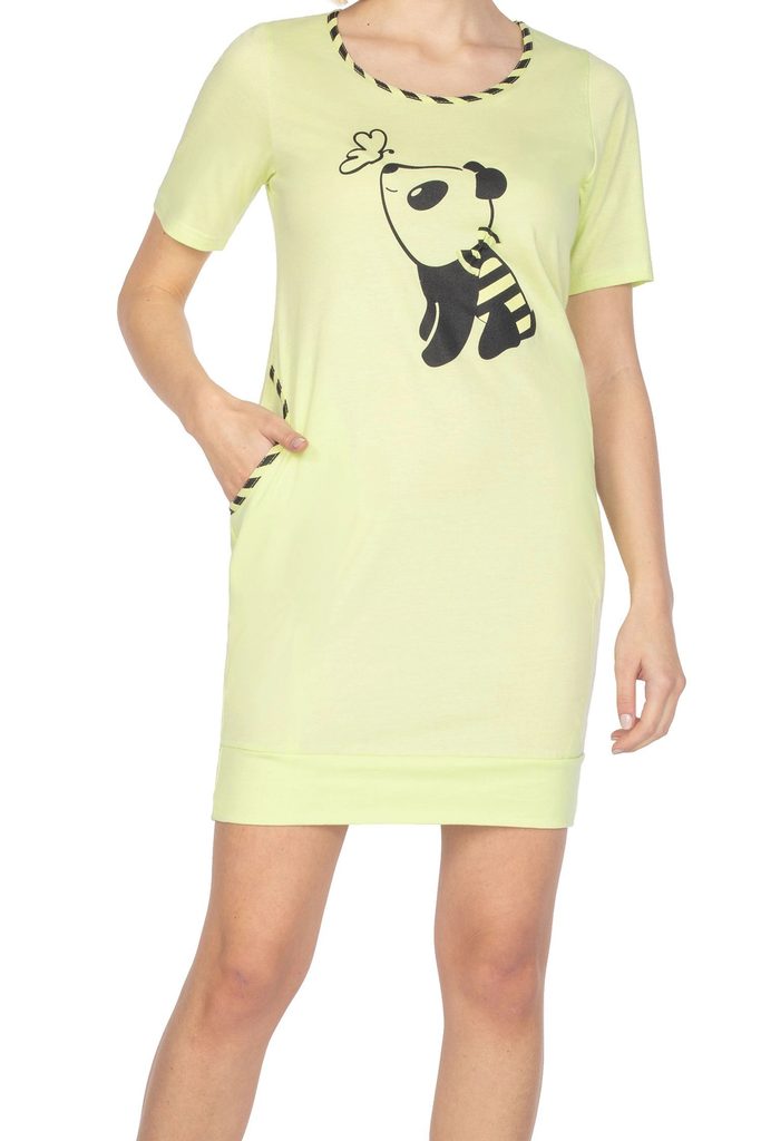 Dámská noční košilka 125 green REGINA - zelená barva - z vysoce jakostní bavlny - krátké rukávy - zdobená potiskem na přední straně - s kapsami