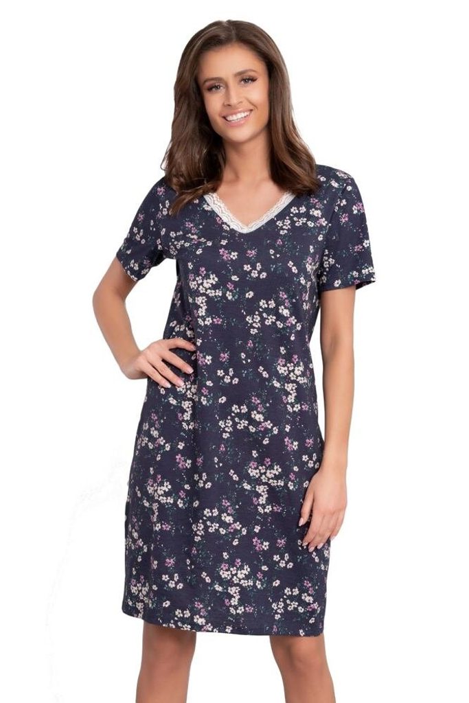 Bavlněná noční košilka Evita má krásný květinový vzor a je zdobená bílou krajkou ve výstřihu.