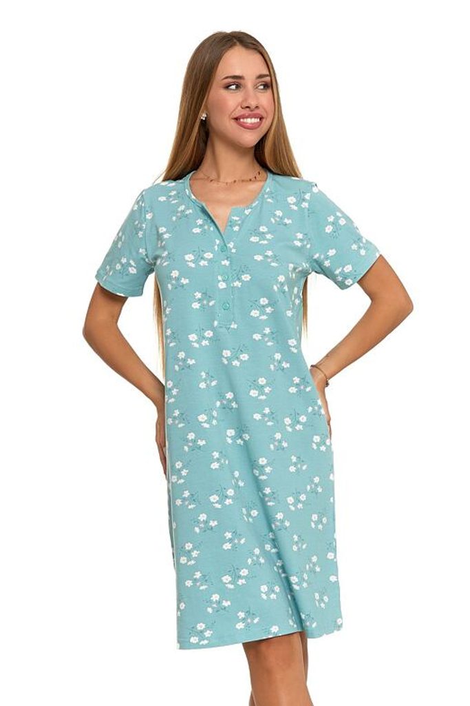 Noční košilka Natálie mátová s kytičkami