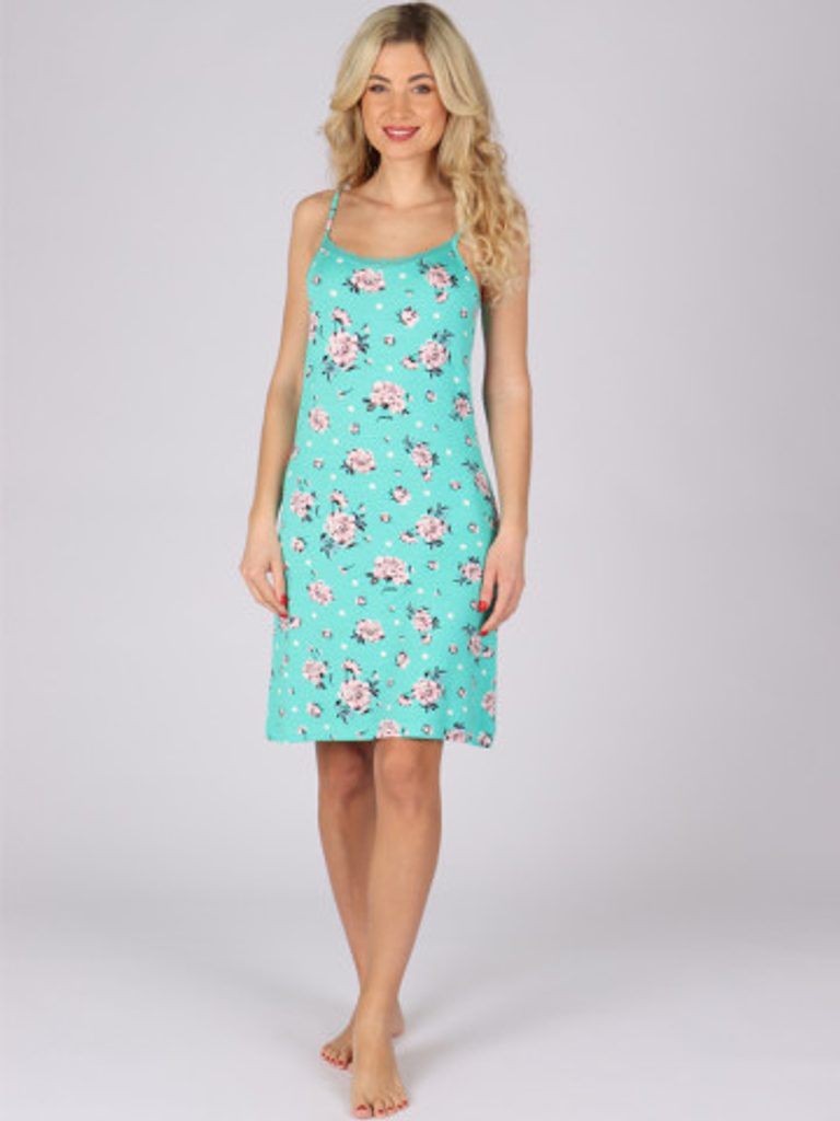 Dámská noční košilka s úzkými ramínky Vás osloví něžným květinovým potiskem. Je ušita z viskozového materiálu, který je na léto ideální.