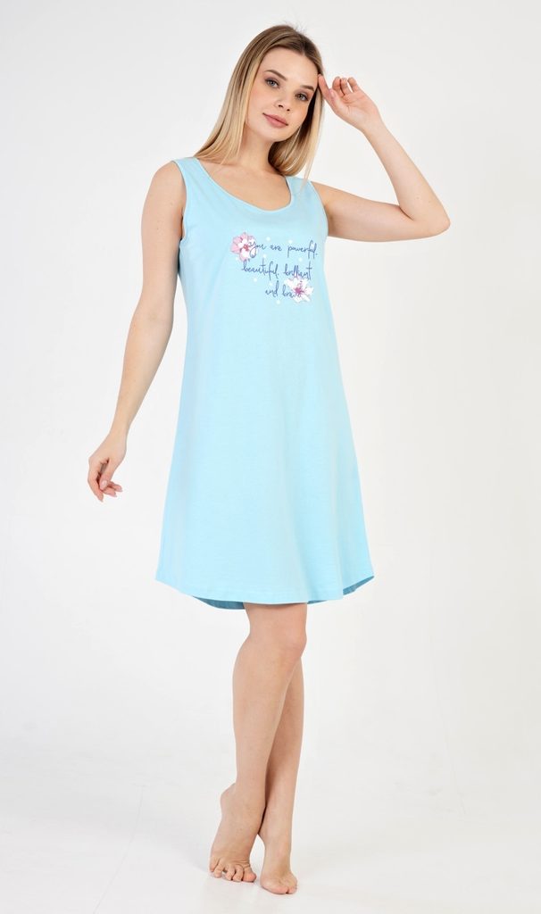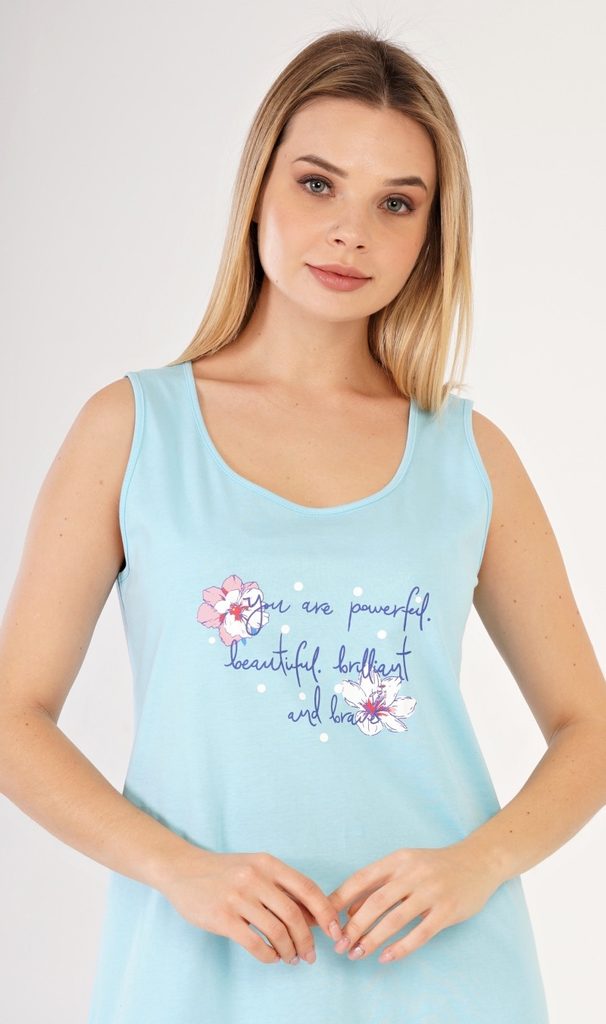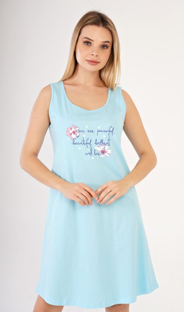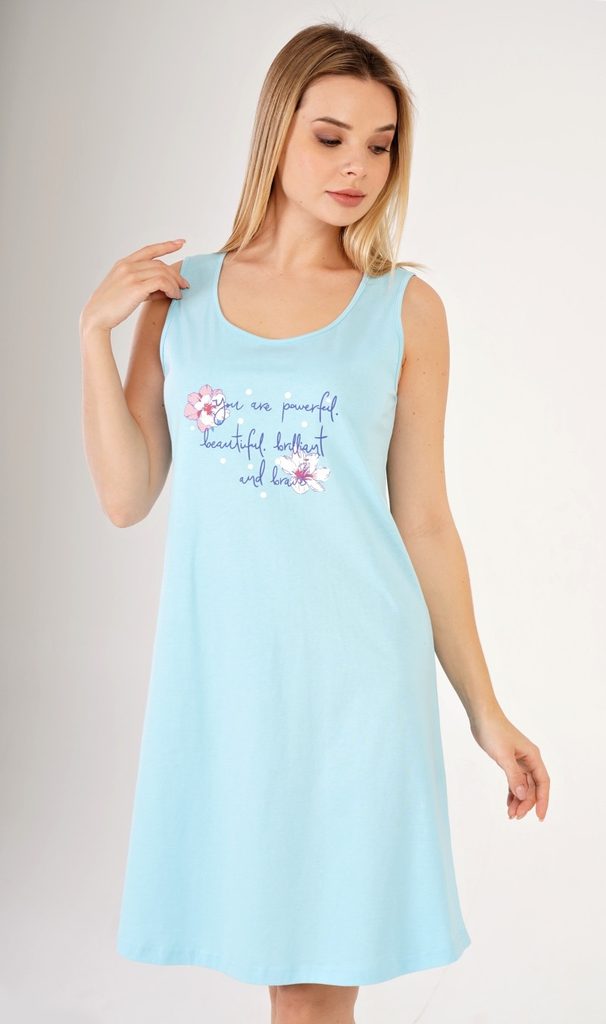 Dámská noční košile na ramínka Ellie. Dámská noční košilka se širokými ramínky působí díky floristickému potisku na jemném barevném podkladu veselým a hravým dojmem. Použitý materiál je jemný a poddajný na dotek. Košile je vhodná na denní nošení.