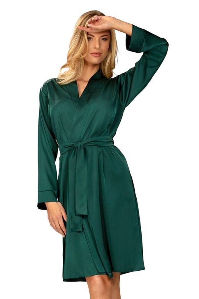 Dámský saténový župan Amina má krásnou smaragdově zelenou barvu a pohodlný střih.