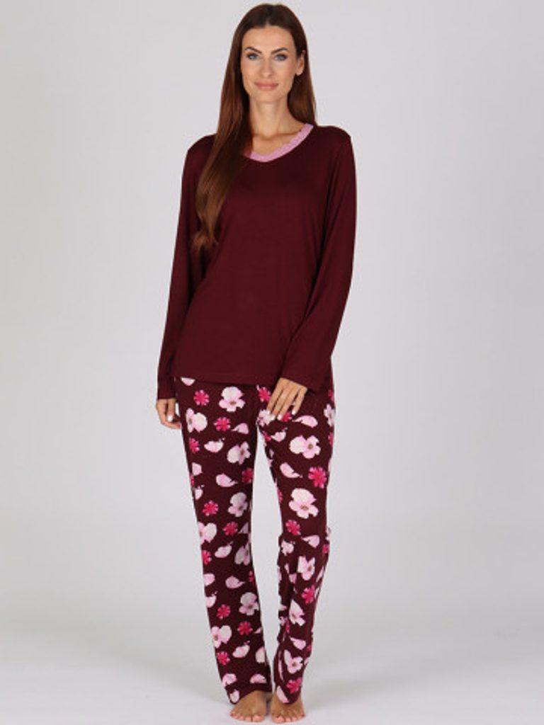 Výborně vypadá a díky bavlně se skvěle nosí. Dámské dlouhé pyžamo MADEIRA se skládá z trika s květinovým potiskem a jednobarevných dlouhých kalhot.