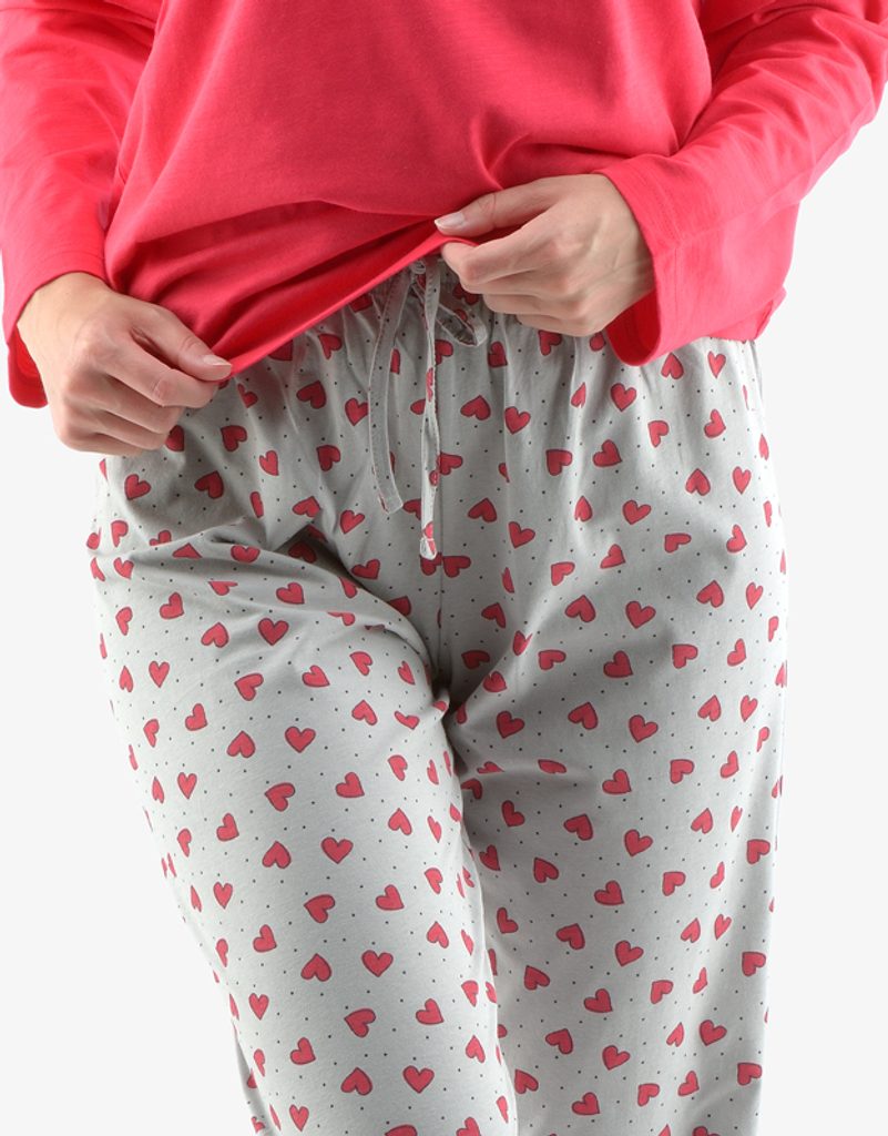 Dámské dlouhé pyžamo se srdíčkovým vzorem 19137P - třešňová, sv. šedá