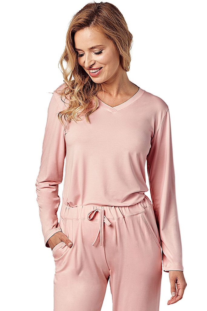 Dámské pyžamo 3053 River TARO - vyrobené z vysoce kvalitní a měkké viskózy - tričko je růžové barvy s krátkými rukávy - dlouhé růžové kalhoty - pohodlná guma v pase