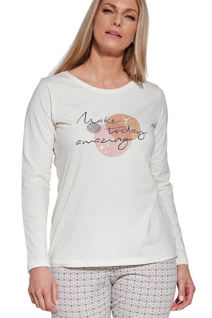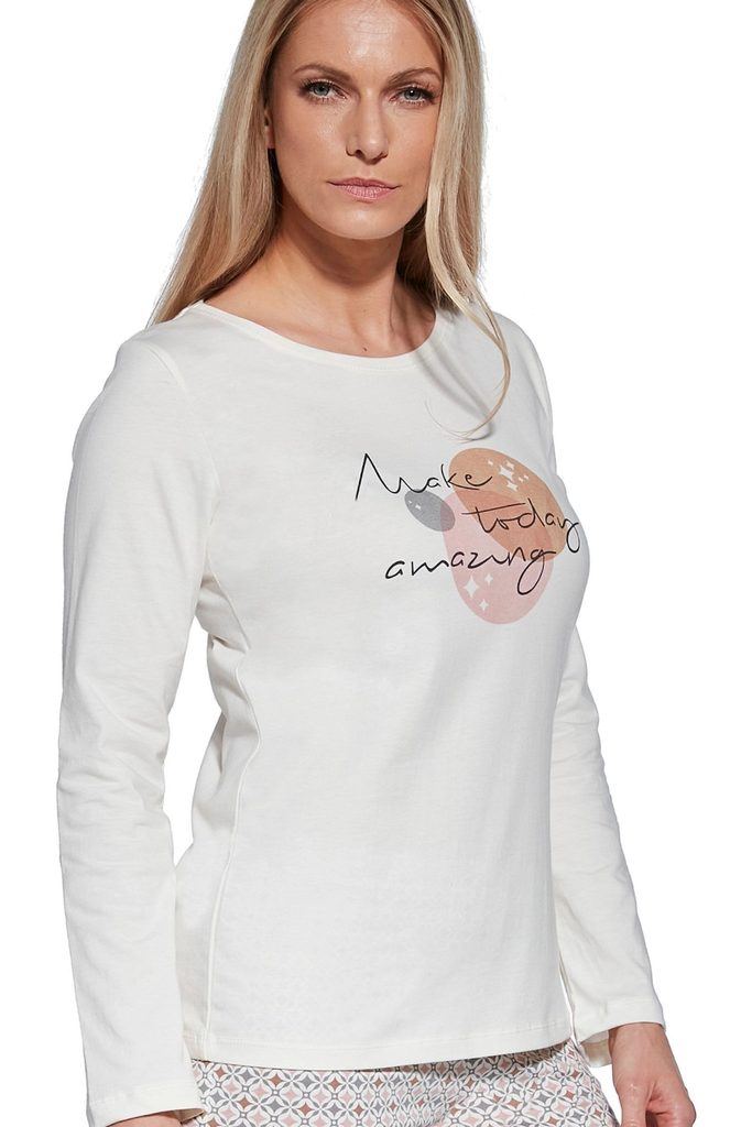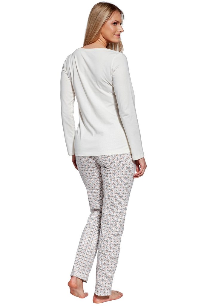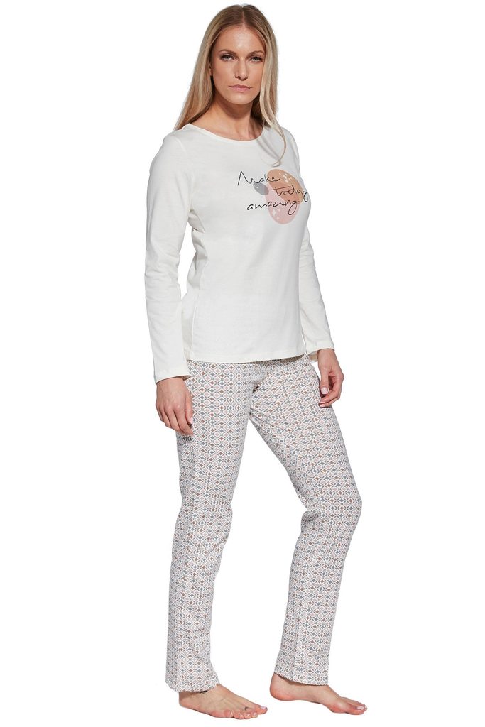 Dámské pyžamo 655/362 Today CORNETTE - z vysoce kvalitní a na dotyk příjemné bavlny - krémové tričko s dlouhými rukávy - na přední straně ozdobené potiskem - dlouhé vzorované kalhoty
