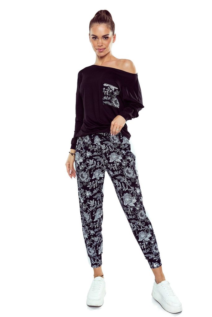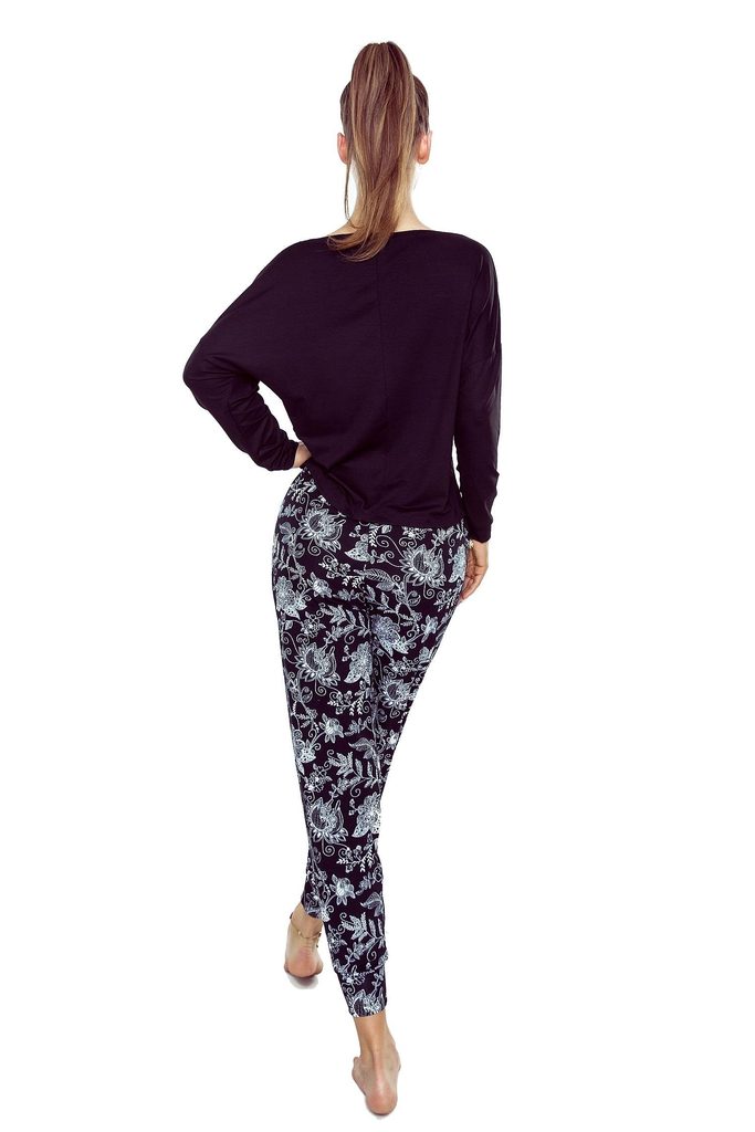 Dámské pyžamo Sarina ELDAR - z vysoce kvalitní viskózy - černé tričko s dlouhými rukávy - dlouhé vzorované kalhoty - zakončené manžetou