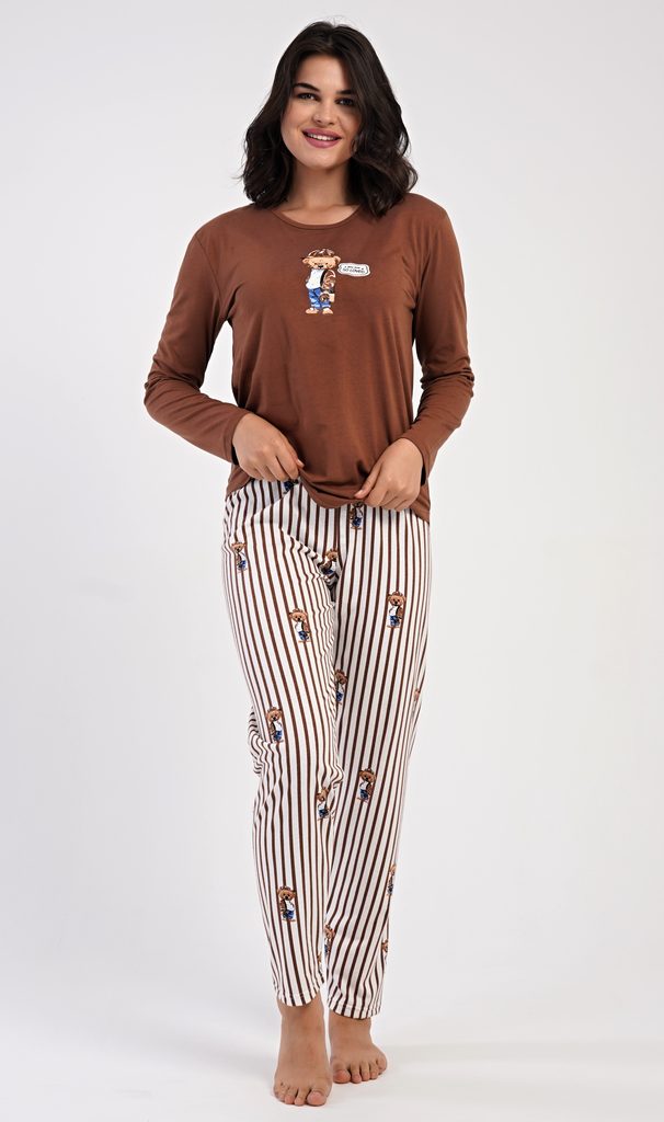 Dámské pyžamo dlouhé Bear - hnědá