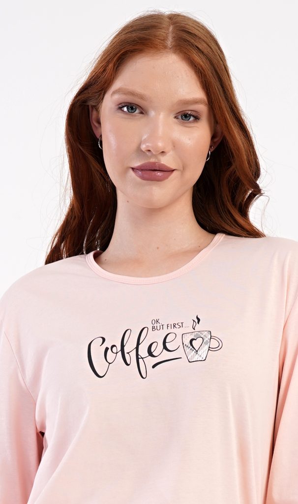 Dámské pyžamo dlouhé Coffee - světle lososová