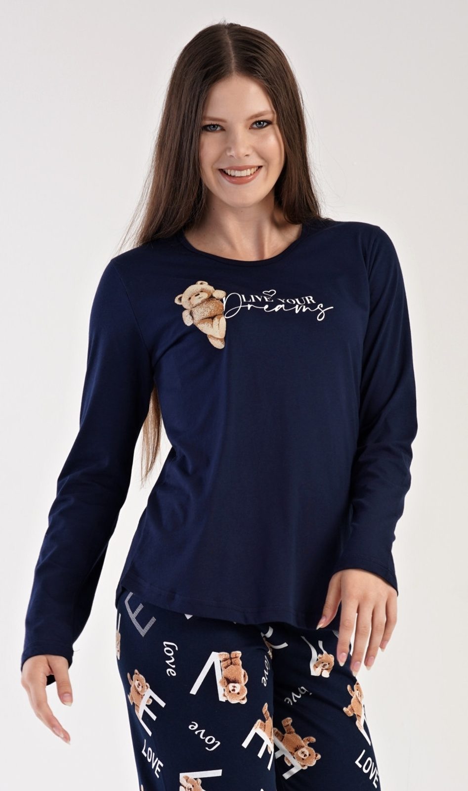 Dámské pyžamo dlouhé Méďa - tmavě modrá