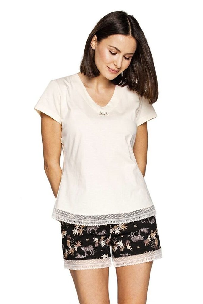 Luxusní bavlněné pyžamo s krajkovými detaily, ve kterém se vám bude pohodlně spát. Materiál: 100% bavlna