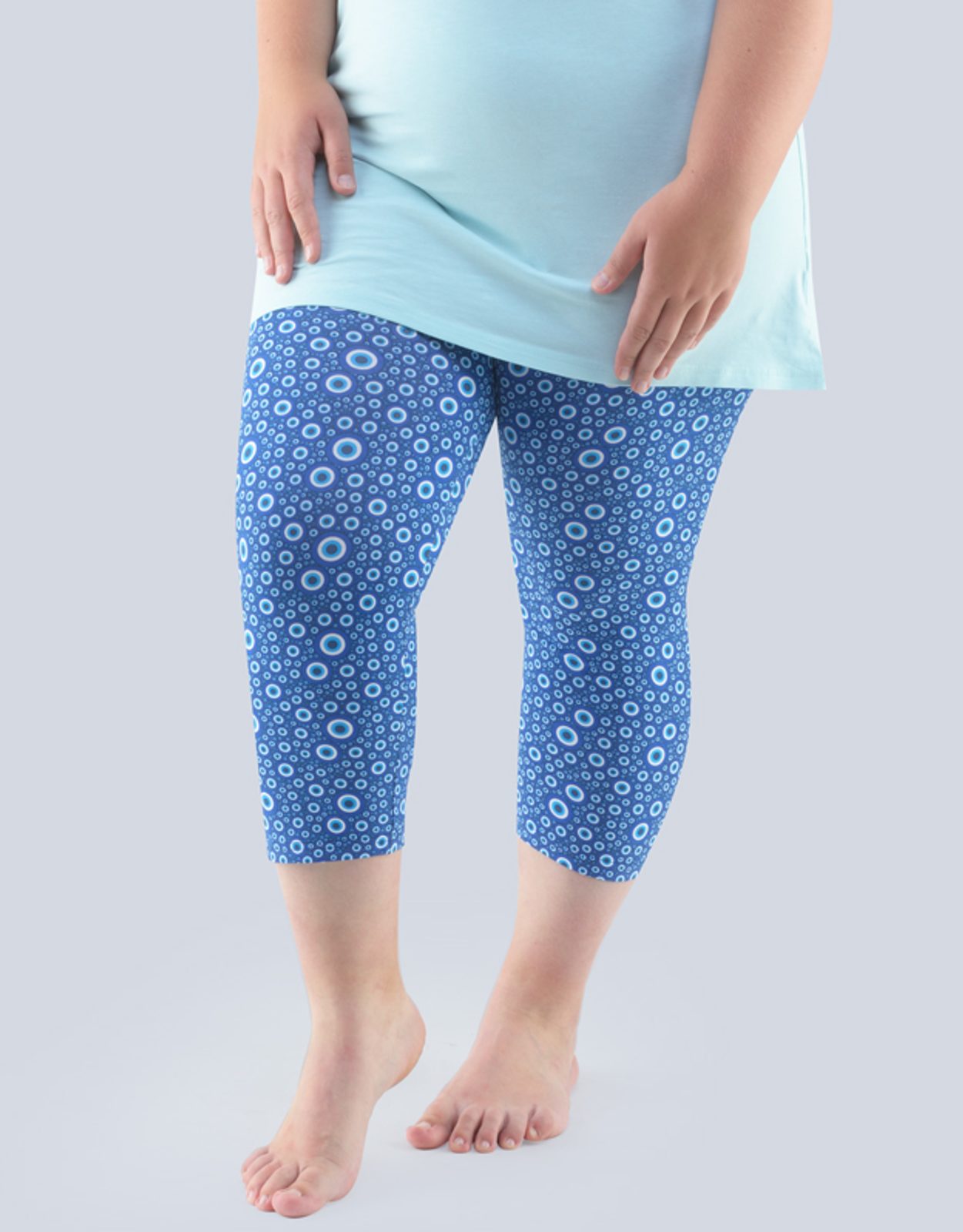 kalhoty 3/4 pyžamové dámské, 3/4 kalhoty, šité, bokové, s potiskem značky GINA, kód 19804. Složení: 92% Bavlna 8% Elastan3/4 legíny.Materiál je vyroben z bavlny, která je doplněna elastanem. Úplet je vhodný pro všechny, kteří hledají přírodní materiály. Elastan přidává materiálu pružnost a zlepšuje jeho tvarovou stálost. Prádlo z tohoto materiálu je vhodné pro každodenní nošení..
