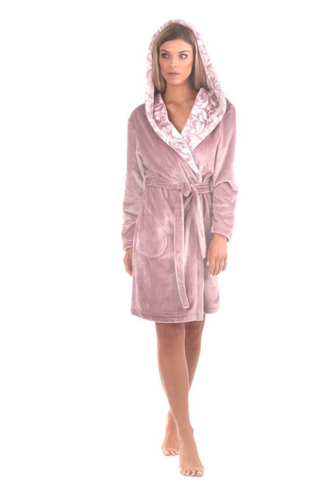Dámský 3/4 župan s kapucí FLORA starorůžová