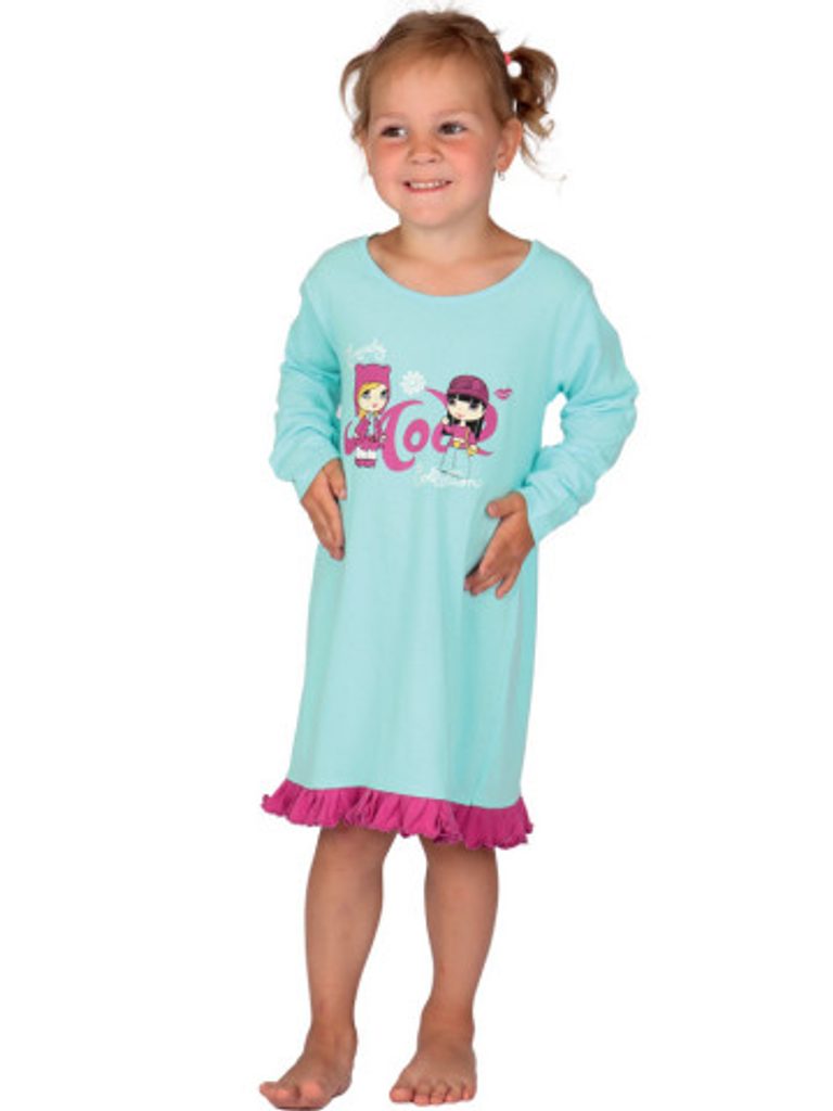 Nádherná noční košilka pro holčičky s veselým potiskem na světle modrém podkladu! Košilka má ozdobný kanýr na spodním okraji, což dělá z této noční košilky jedinečný kousek. Košilka je z čisté bavlny, díky které je přímo pohádka v ní usínat.