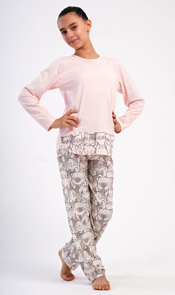 Dětské pyžamo dlouhé Koťata - světle lososová