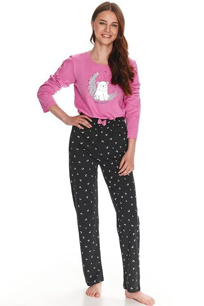 Holčičky jistě potěšíte pyžamem s krásným potiskem medvídka a růžovo-černou barevnou kombinací.