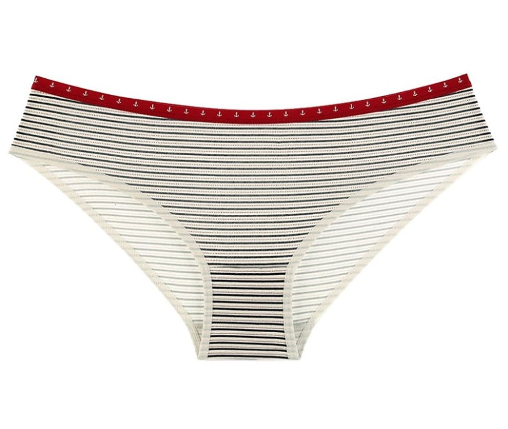 Dětské kalhotky Lili. Klasické dětské kalhotky se liší potiskem v jednotlivých barvách - ve tmavé barvě jsou kalhotky s jemným geometrickým potiskem, ve světlé barvě jsou proužkované. Použitý materiál je jemný a poddajný na dotek.