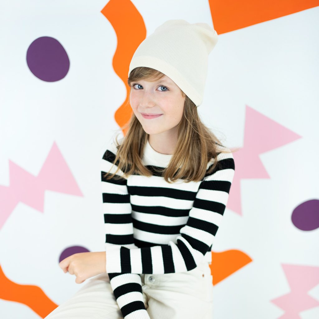 Přechodná čepice pro děti. Čepice určená zároveň pro dívky i pro chlapce. Lehce elastická. Klasický střih.
