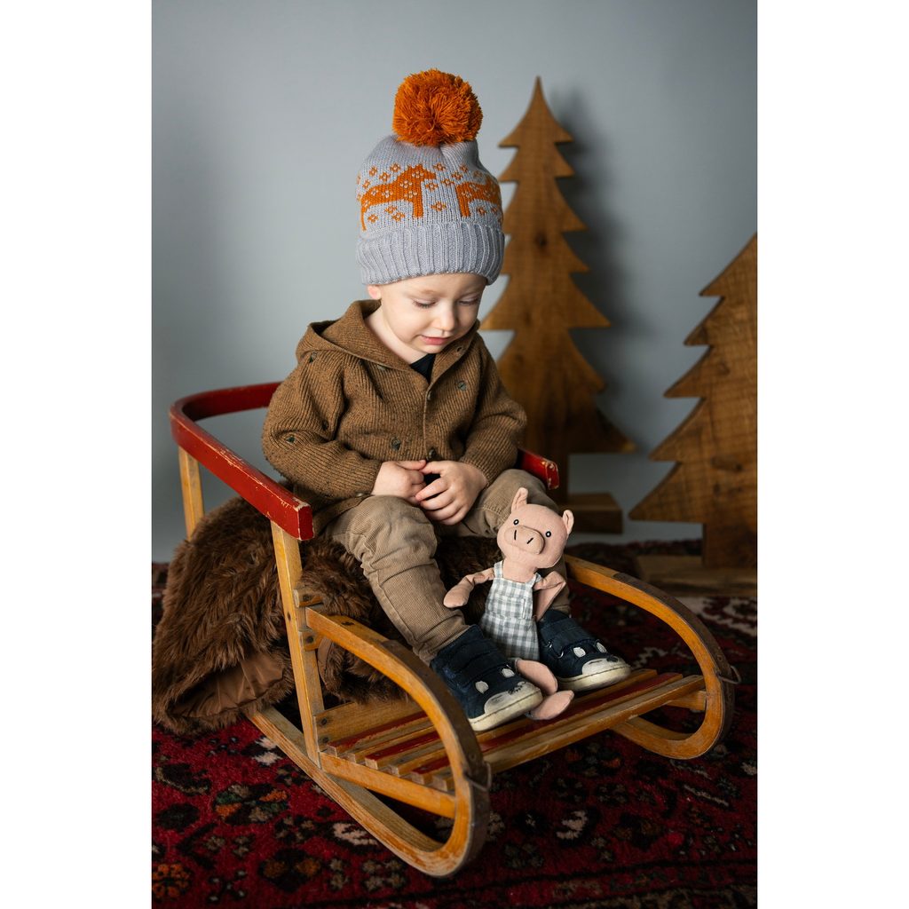 Roztomilá čepice pro děti. Výrobek zateplený uvnitř umělou kožešinou. Čepice určená zároveň pro dívky i pro chlapce. Dětský model.