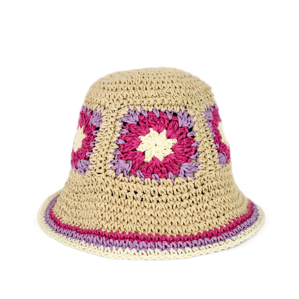 Letní klobouk se zdobeným lemem. Provedený z přírodního materiálu. Může být složen bez újmy pro tvar. Velmi lehký, hezky se prezentuje na hlavě. Hodí se zároveň v rozpáleném městě i na pláži.
