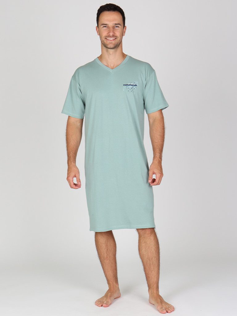 •    pánská noční košile je volnějšího střihu s délkou ke kolenům