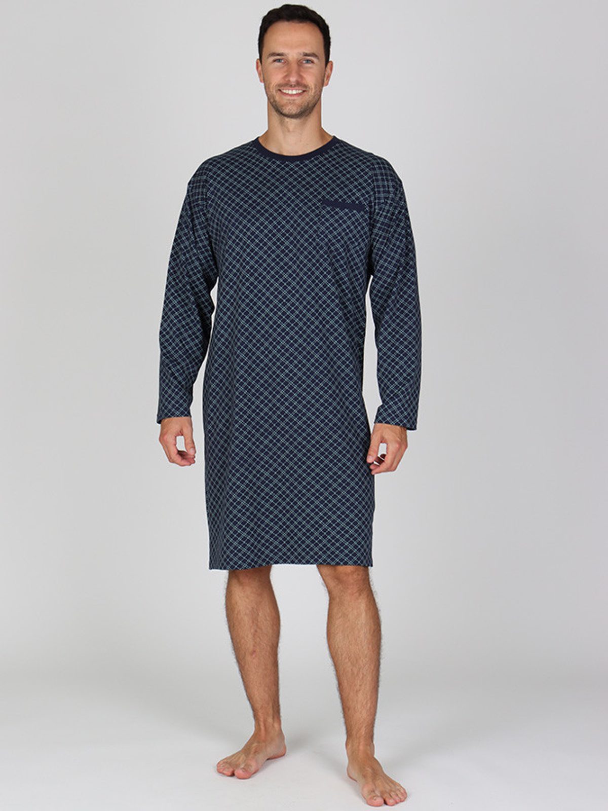 Pánskou noční košili P JANEK si všichni páni zamilují. Dlouhý rukáv, délka pod kolena a příjemný materiál zajistí při spánku potřebné pohodlí. Noční košile skvěle poslouží i jako dárek.