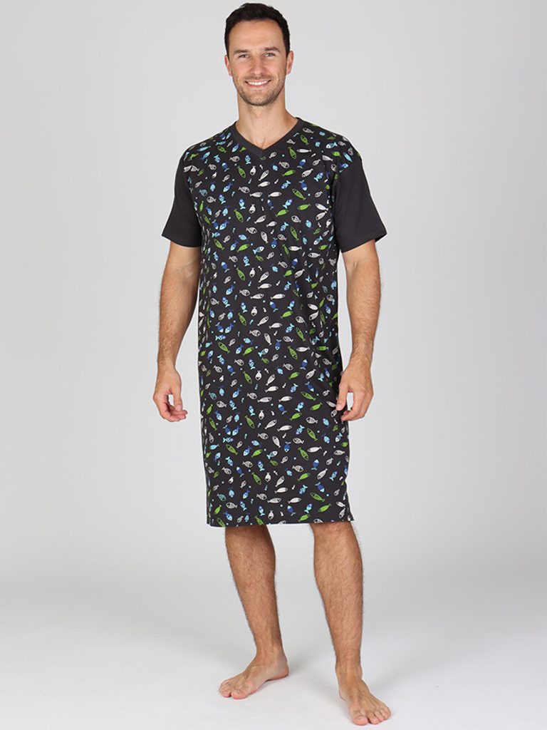 Pánská noční košile P PONGO s pivním potiskem potěší každého milovníka ryb. Krátký rukáv, délka nad kolena a příjemný materiál zajistí při spánku potřebné pohodlí. Noční košile skvěle poslouží i jako dárek.