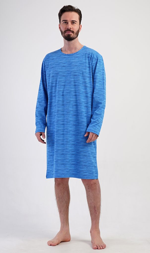 Pánská noční košile s dlouhým rukávem Sebastian - modrá